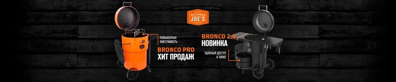 Oklahoma Joe's Drum Bronco Pro это один из самых популярных смокеров которые используют на соревнованиях по копчению, для чего его выкрасили в оранжевый цвет, а на передней поверхности разместили съемную табличку для логотипа команды. Drum Bronco Pro это чрезвычайно надежный и продвинутый аппарат для копчения. Корпус и крышка изготовлены из стали толщиной 4 мм, что позволяет Oklahoma Joe's дать 10-ти летнюю гарантию на основные элементы коптильни.
